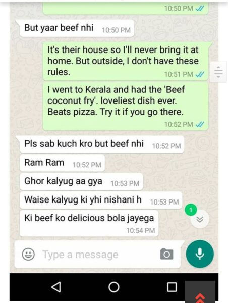 DU Student Tells Girl, ‘If You Eat Beef, You Can Also Have S*x With Your Brother’. Read The Chat.